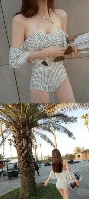 ラインチェック 総柄 フリル バストカバー シンプル エレガント 上品 ワンピース水着 スイムウェア ビーチウェア 新作 人気 トレンド 流行り オシャレ レディース インスタ映え フォトジェニック ナイトプール ビーチ プール 海 夏 海水浴