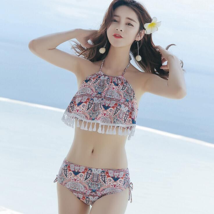 エスニック柄フリンジタンキニ スカート付き フェミニン 水着 カジュアル 個性的 インスタ映え フォトジェニック 夏 海 海水浴 ナイトプール