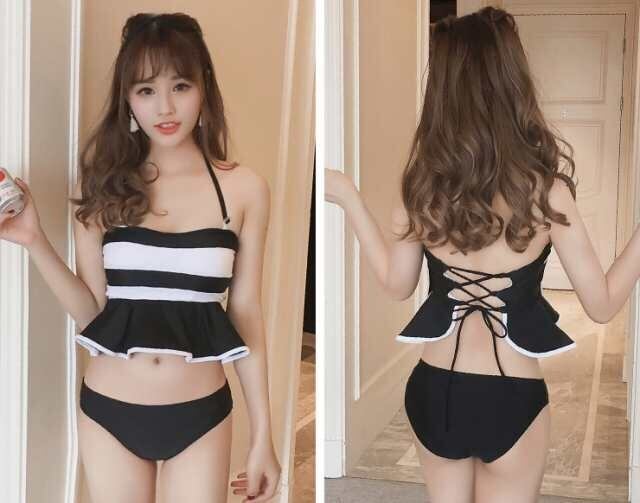ビキニセット 2点セット ツーピース セパレート モノカラー ボーダー クロシェ レースアップ ペプラム フリル スタイルカバー 大人 トレンド 流行り オシャレ レディース インスタ映え フォトジェニック ナイトプール ビーチ プール 海 夏 海水浴 バイカラー 大人レディ