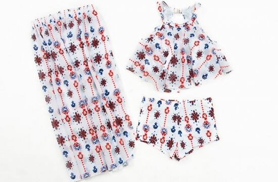 ロングスカート付き ハイネックシフォンのスイムウェア 3点セット ショートパンツタイプ トレンド 流行り オシャレ レディース インスタ映え フォトジェニック ナイトプール ビーチ プール 海 夏 海水浴