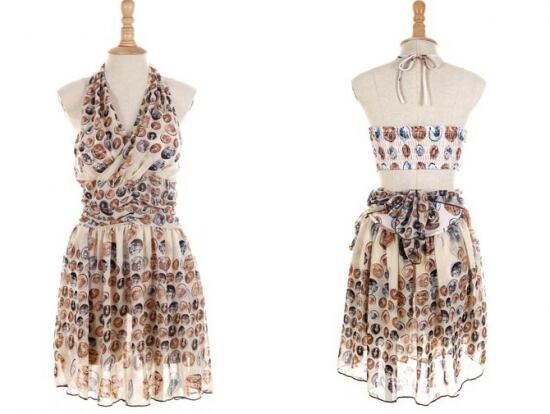 ワンピースは丈が長めですが、背中が大きく開いたホルターネックタイプなので