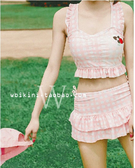 ガーリーなパステルカラーのギンガムチェックのビキニは