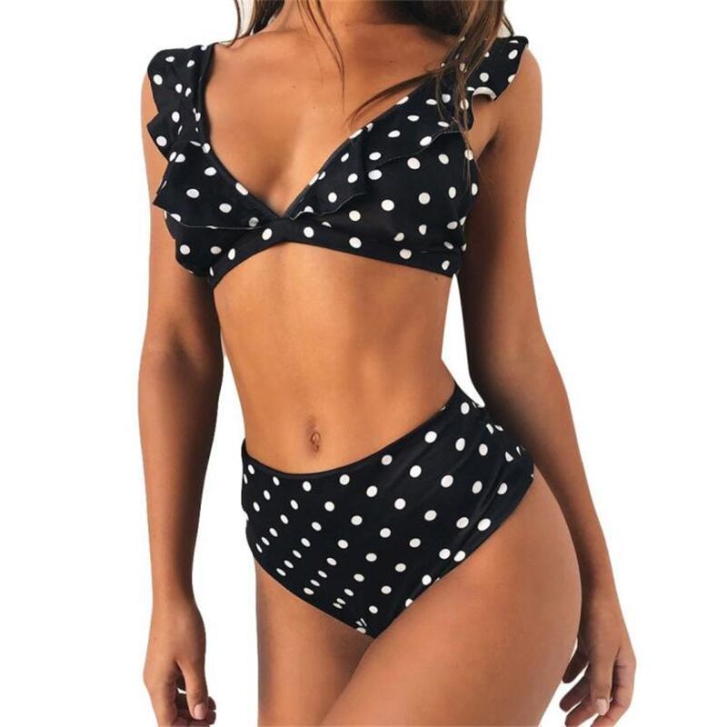 ドット柄フリルビキニ 水着 ビーチ 海水浴 ナイトプール フリルデザイン トレンド柄 インスタ映え フォトジェニック セクシー 夏 海