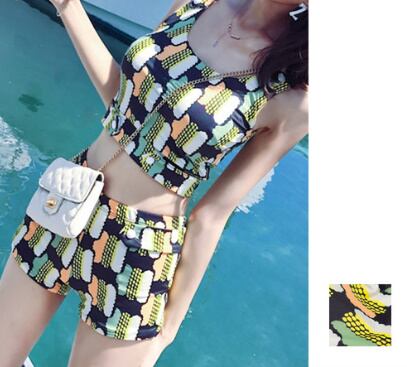 海に映えるタンキニ オシャレ可愛い 鮮やかプリント スポーティ 体型カバー