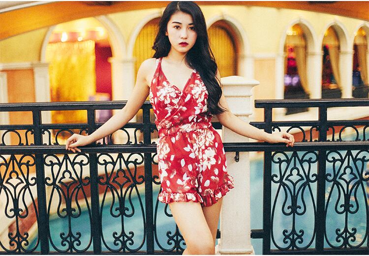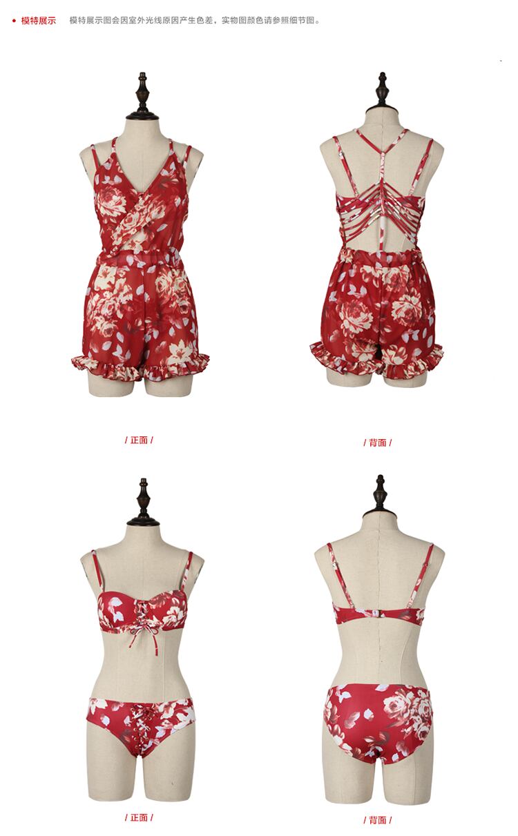ワンピース付き花柄ビキニ ショートパンツ ワンピース 一体型 セクシー レースアップ 3点セット インスタ映え フォトジェニック 海水浴 ナイトプール 夏 海