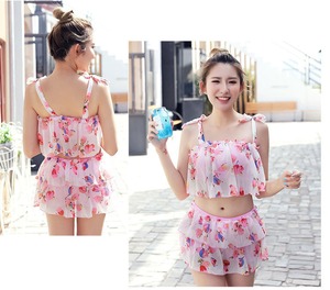 フレアデザイン花柄シフォンタンキニ ビキニ 水着インスタ映え フォトジェニック 夏 パステル 海 海水浴 ナイトプール かわいい