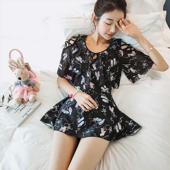 ワンピース水着 スイムウェア ビーチウェア トゥシューズ バレエシューズ リボンシューズ 大人可愛い フレア スタイルカバー トレンド 流行り オシャレ レディース インスタ映え フォトジェニック ナイトプール ビーチ プール 海 夏 海水浴