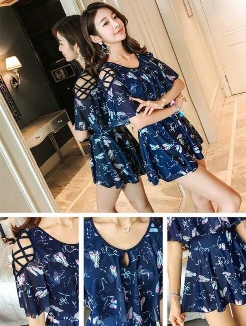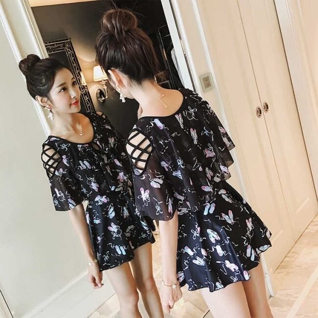 ゆるっとしたスタイルで水着ならではのぴっちり感が出ない、控えめ女子にも嬉しい一枚です♪