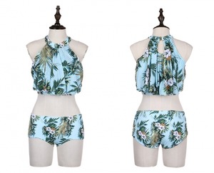 ビーチセット ビキニ 3点セット スリーピース セパレート ボタニカル リーフ ハイネック フリル スタイルカバー ハイウエスト スカート リゾート レディ トレンド 流行り オシャレ レディース インスタ映え フォトジェニック ナイトプール ビーチ プール 海 夏 海水浴
