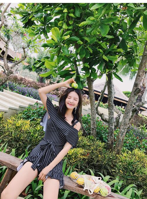 ウエストのリボンや胸元のフリルなど可愛さもありつつ、露出を抑えたデザインです♪