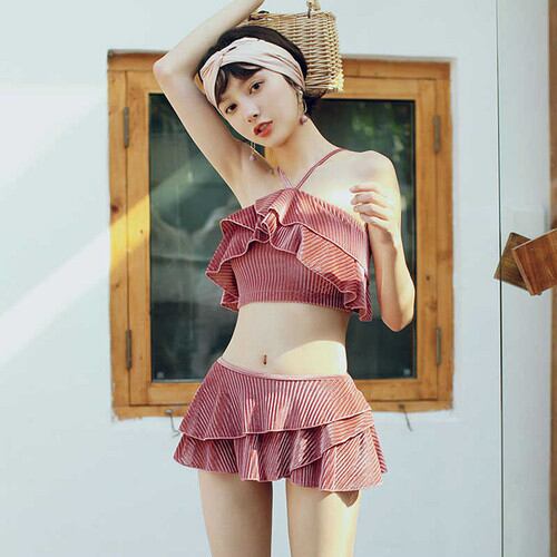 ホルターネックシンプルビキニ 水着 ビキニ フリル シック エレガント お洒落水着 海 プール シンプル