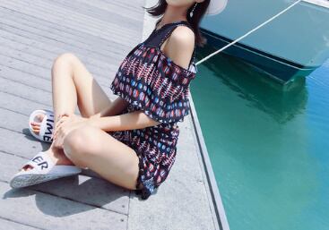 気になるバスト、ウエスト、太もも周りもしっかりカバーできるトップス、ショートパンツも一緒に付いたお得な水着4点セットです。