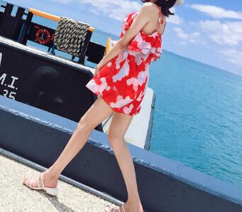 水着3点セット 小麦色の肌によく映える真っ赤なビキニ アニマル柄 トレンド ワンピ付き