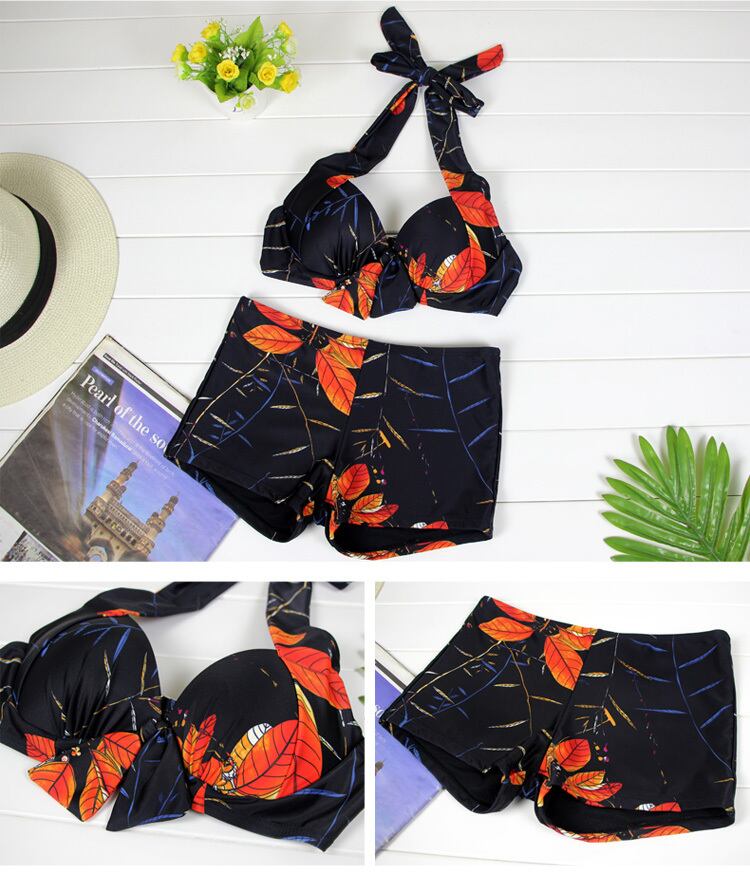 ボタニカル柄 ビキニ トップス付 ショーパン ハイウエスト シック ブラック 水着 インスタ映え フォトジェニック 夏 海 海水浴 ナイトプール