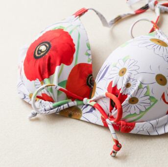 フェミニンビキニ3点セット 水着 2パターンの鮮やか花柄がコラボ お洒落に日焼け防止 トレンド