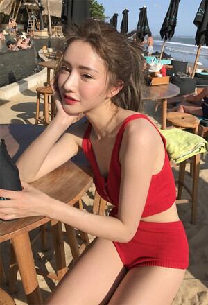 ビキニセット セパレート ツーピース 2点セット ニット フロントボタン 無地 シンプル ワンカラー ハイウエスト スタイルアップ トレンド 流行り オシャレ レディース インスタ映え フォトジェニック ナイトプール ビーチ プール 海 夏 海水浴