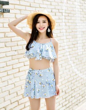 ビキニセット セパレート ツーピース 2点セット デイジー マーガレット 花柄 バストカバー フラワー フローラル フリル ウエストタイ フレア ミニ丈 フェミニン 上品 可愛い オトナ女子 トレンド 流行り オシャレ レディース インスタ映え フォトジェニック ナイトプール ビーチ プール 海 夏 海水浴