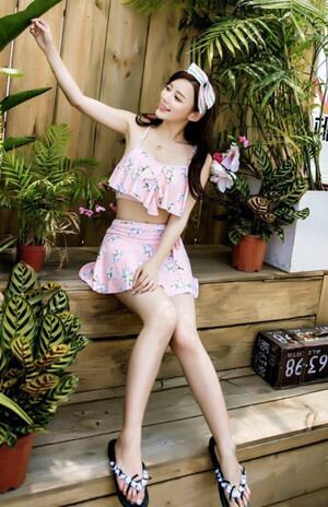 バストラインのカバーと愛らしさを主張するフリル使いのトップスがツボ◎
