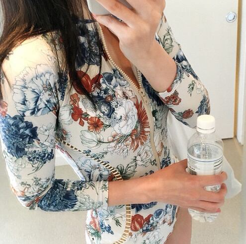花柄が華やかな長袖のラッシュガードで、日焼け防止対策やマリンスポーツもおしゃれにかわいく☆