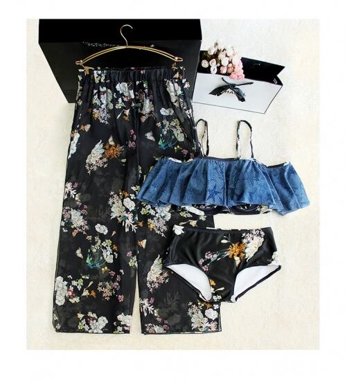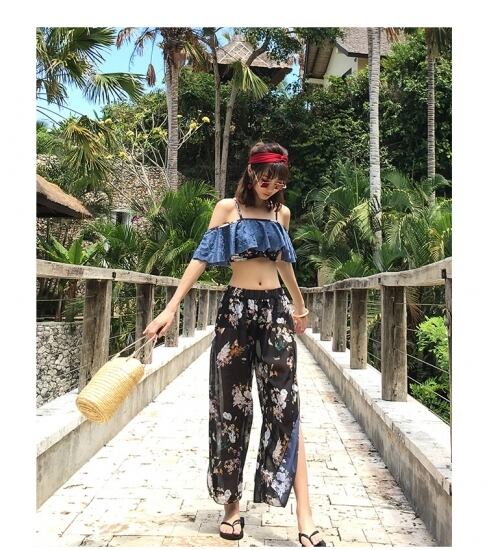 ビキニセット セパレート ツーピース 3点セット オフショルダー スター柄 フリル バストカバー シック 花柄 ビーチパンツ 大人 リゾート レディ トレンド 流行り オシャレ レディース インスタ映え フォトジェニック ナイトプール ビーチ プール 海 夏 海水浴