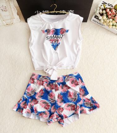 ノースリーブトップとショーパン、ビキニの4点セットでいろんな着こなしが可能です。