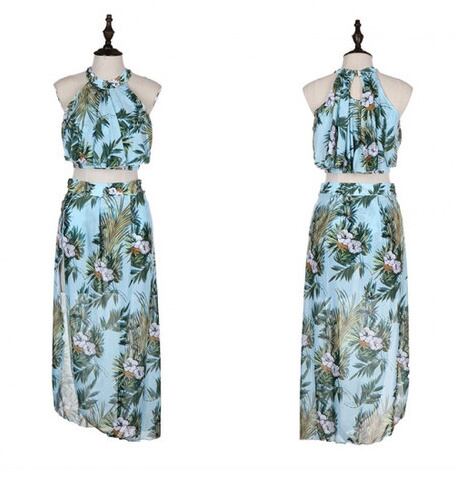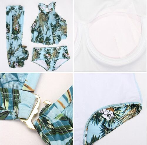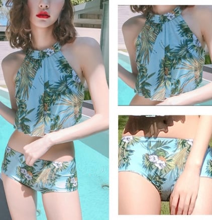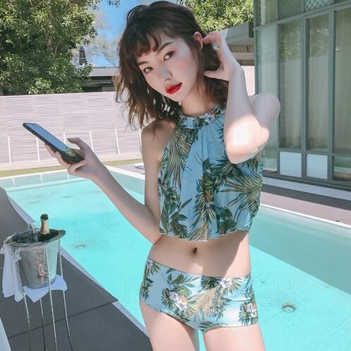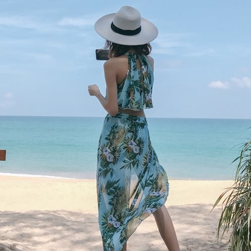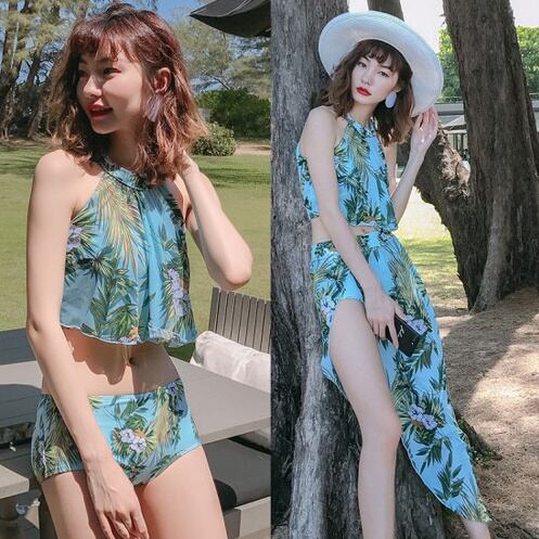 花柄ホルターネックビキニ3点セット 水着 ボタニカル パレオスカート トレンド セクシー 体型カバー ビーチ リゾート