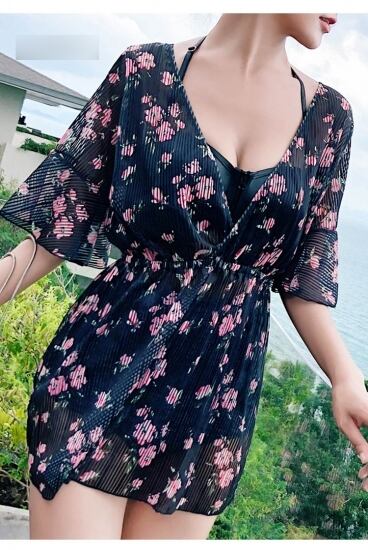 ビキニセット セパレート ツーピース 3点セット カバーアップ ワンピース 花柄 ストライプ 無地 シンプル ワンカラー フリル デニム ボタン 大人 レディ シック トレンド 流行り オシャレ レディース インスタ映え フォトジェニック ナイトプール ビーチ プール 海 夏 海水浴