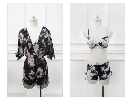 ビキニセット セパレート ツーピース 3点セット カバーワンピース カバーアップ レトロ 花柄 フローラル フラワー 定番 大人 レディ シック 18SS トレンド 流行り オシャレ レディース インスタ映え フォトジェニック ナイトプール ビーチ プール 海 夏 海水浴