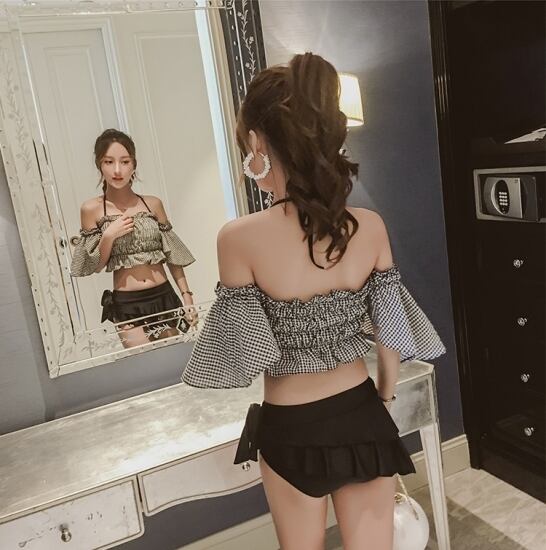 ビキニセット セパレート ツーピース 2点セット ギンガムチェック モノカラー 大人可愛い 大人ガーリー オフショルダー スカート 無地 シンプル 定番 人気 トレンド 流行り オシャレ レディース インスタ映え フォトジェニック ナイトプール ビーチ プール 海 夏 海水浴