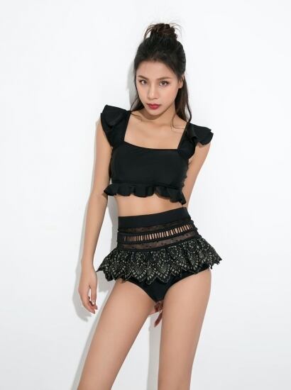 ビキニセット セパレート ツーピース 2点セット タンキニ クロシェ フリル 大人可愛い セクシー エレガント 刺繍レース シースルー 新作 トレンド 流行り オシャレ レディース インスタ映え フォトジェニック ナイトプール ビーチ プール 海 夏 海水浴