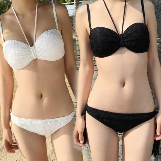 ビキニセット セパレート ツーピース 2点セット 無地 シンプル ワンカラー メッシュ レース バンドゥ ベーシック 定番 着回し トレンド 流行り オシャレ レディース インスタ映え フォトジェニック ナイトプール ビーチ プール 海 夏 海水浴