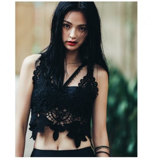 シンプルなバンドゥトップスにレイヤードできるレーストップ付き♡