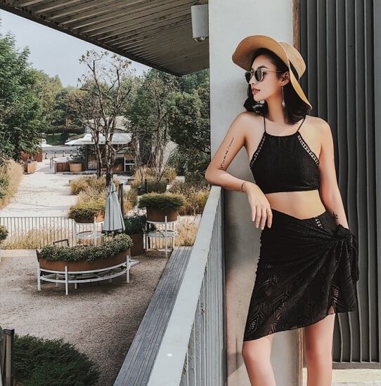 大人 レース ワンカラー ホルターネック ハイウエスト リゾート 大人 レディ 綺麗 パレオ 巻きスカート ビーチガウン トレンド 流行り オシャレ レディース インスタ映え フォトジェニック ナイトプール ビーチ プール 海 夏 海水浴