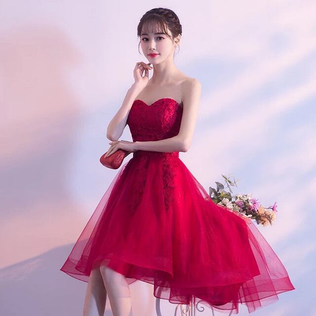 レッド シースルー フィッシュテール ドレス 定番 綺麗 可愛い エレガント インスタ映え お呼ばれ 結婚式 結婚式二次会 女子会 パーティ 清楚