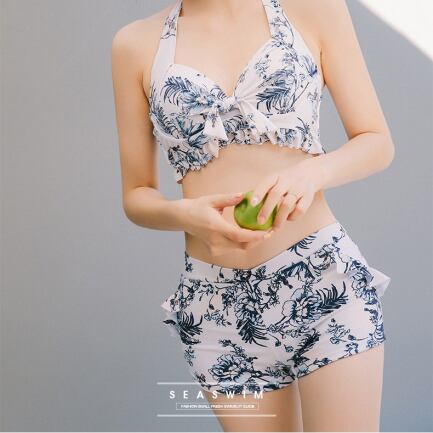 ビキニセット セパレート ツーピース 2点セット リボン フリル 総柄 清楚 上品 リゾート 清涼感 フェミニン トレンド 流行り オシャレ レディース インスタ映え フォトジェニック ナイトプール ビーチ プール 海 夏 海水浴