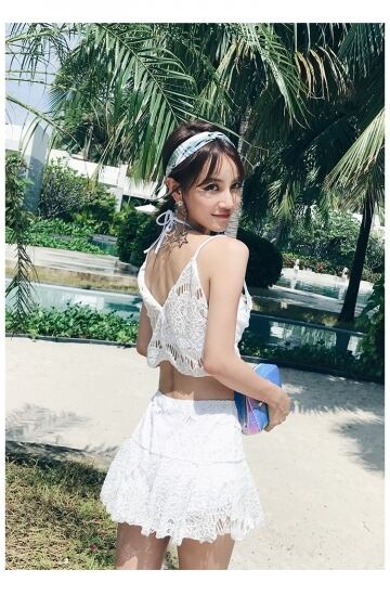 花柄 フラワー フローラル 無地 シンプル レース カバートップ スカート ビキニセット セパレート スリーピース 3点セット フェミニン トレンド 流行り オシャレ レディース インスタ映え フォトジェニック ナイトプール ビーチ プール 海 夏 海水浴