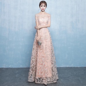 ロングドレス 刺繍 肩あき 脚長効果 綺麗 清楚 かわいい エレガント インスタ映え パーティ お呼ばれ 結婚式 結婚式二次会 女子会