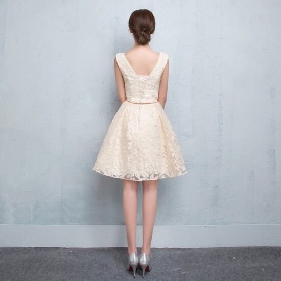 パーティードレス ひざ丈 ワンピース バックコンシャス タックフレア オフホワイト ピンク ガーリー 大人 上品 お呼ばれ インスタ映え かわいい フォトジェニック