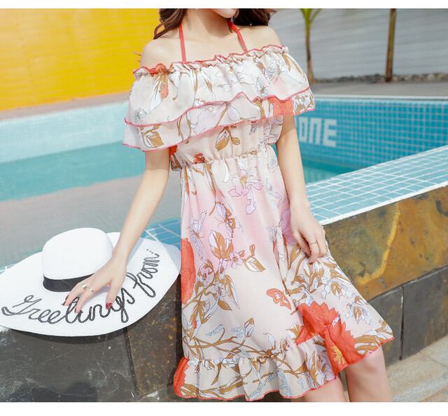 3点セット ビキニ フリル × ボーイレッグ オフショルダー 可愛く体型カバー ビーチ 海 プール リゾート 旅行 おしゃれ