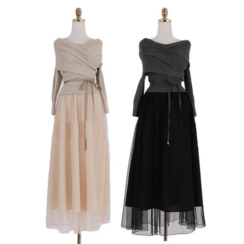 ワンピース ロング丈 マキシ丈 レディース カシュクール ニット チュール ドッキングワンピース エアリー レース オフィス 大人 上品 デート インスタ映え フォトジェニック