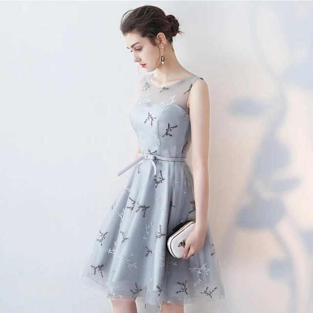 ライトグレー シースルー ドレス 膝丈 可愛い 綺麗 セクシー 上品 おしゃれ エレガント パーティ お呼ばれ デート 結婚式 結婚式二次会 記念日 定番 インスタ映え