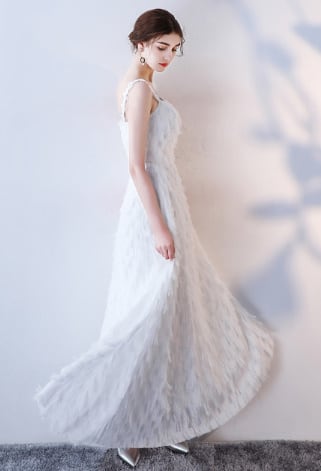 フェザー風のふわっとしたデザインがフェミニンなロングドレスです♪