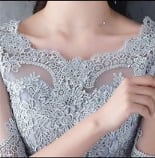 パーティードレス シースルー 花柄 レース 刺繍 チュール グレー フェミニン 透け感 編み上げ 結婚式二次会 お呼ばれ 2018年新作 婚活パーティー フォーマルドレス 披露宴 結婚式ドレス ウェディング 謝恩会 演奏会
