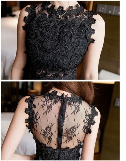 パーティードレス ミニ丈 ワンピース 立体レース Aライン ノースリーブ シースルー ハイネック セクシー エレガント 大人 上品 結婚式二次会 お呼ばれ 2018年新作 婚活パーティー フォーマルドレス 披露宴 結婚式ドレス ウェディング 結婚式