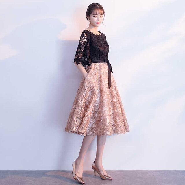 切替 レース イブニングドレス 花柄刺繍 リボン 綺麗 おしゃれ 可愛い 上品 清楚 デート 結婚式 二次会 お呼ばれ 女子会 記念日 インスタ映え 2018年新作 演奏会
