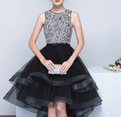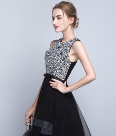 ダークな色合いですが、キラキラしたスパンコールデザインが映えるおしゃれなパーティードレスです。