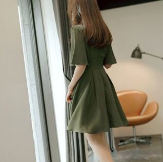 カシュクール風VネックとAラインのフレアスカートがエレガントな印象♪