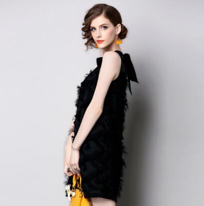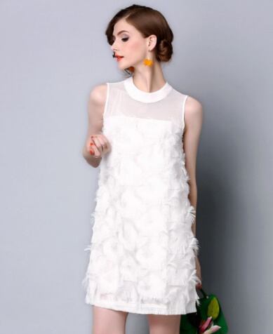 ミニドレス 2color フェザー 刺繍 メッシュ ノースリーブ フェミニン 大人可愛い シースルー ハイネック お洒落 結婚式二次会 お呼ばれ 2018年新作 婚活パーティー フォーマルドレス 披露宴 ウェディング 謝恩会 入学式