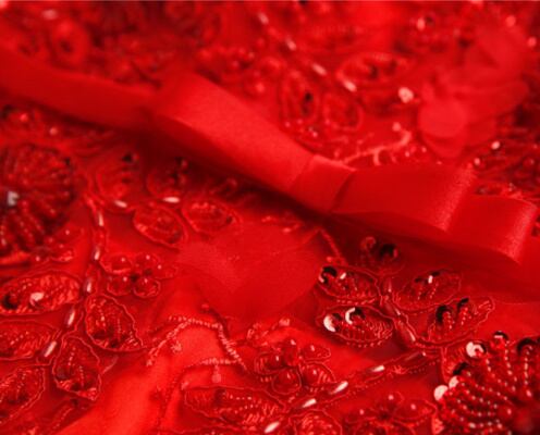 鮮やかなレッドカラーがエレガントなロングドレスです。