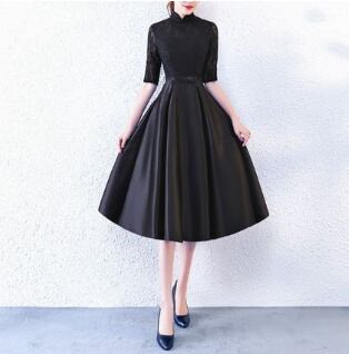 パーティドレス 花柄 レース ハイネック 切替 ミモレ丈 半袖 シック 上品 エレガント フレアスカート Aライン 結婚式二次会 お呼ばれ 2018年新作 婚活パーティー フォーマルドレス 披露宴 結婚式ドレス ウェディング 謝恩会 入学式 演奏会